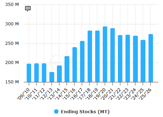 Global ending stocks projected to be the largest since the 2020/21crop year: