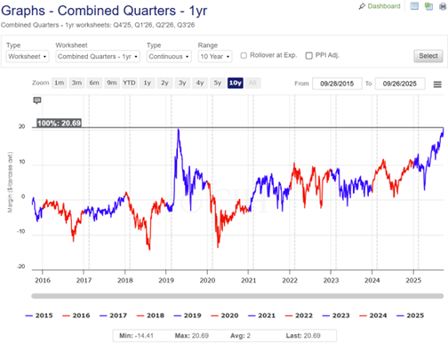 Every producer faces unique costs, pricing structures, and risk tolerances, but overall, the margin outlook remains exceptionally strong. Demonstration hog operation margins for the next four quarters sit in the 100th percentile of profitability over the past decade—an extremely rare opportunity to secure favorable returns and reduce risk.
