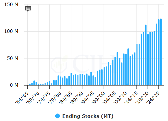 Global ending stocks projected to be the largest since the 2020/21crop year: