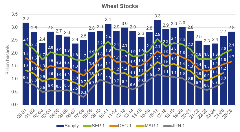 December 1 Wheat Stocks at 1,675 million bushels would be the highest for Q2 since 2020/21: