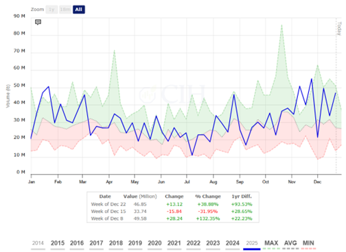 The federal government continues to play catch-up on data releases following the record-long 43-day shutdown this fall. As a result, traditional monthly and weekly export data remain meaningfully lagged. In the interim, an often-overlooked source of information can be found in the LM_PK640 report. Released Monday mornings for the prior week, these data offer a timelier snapshot than the FAS Weekly Export Sales reports, which are published Thursdays, or official export figures that lag by at least five weeks. While the series can be noisy and a single data point does not constitute a trend, recent readings point to improving demand outside of North America. The strong finish to the year has been a welcome development for pork producers.